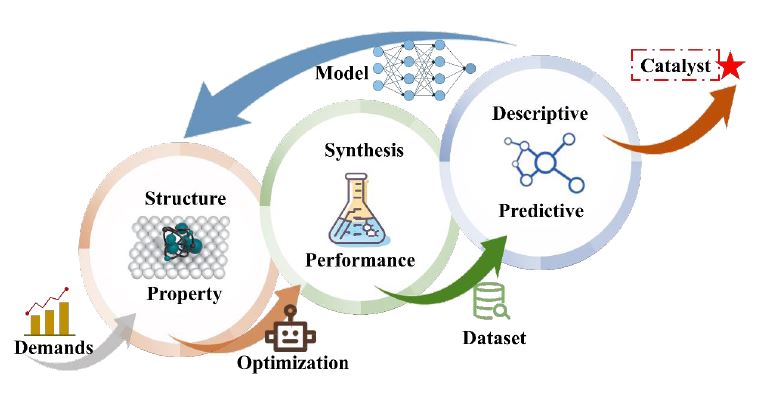 Catalysts are essential for the synthesis of a variety of products, ranging from pharmaceuticals to fuels, which are playing the crucial roles in the numerous industrial applications fundamental to processes spanning chemical synthesis, energy conversion, and environmental remediation [1]. The significance of catalysts is highlighted by their involvement in key industrial processes such as the Haber-Bosch process for ammonia synthesis, catalytic converters in automobiles for pollution control, and the production of various petrochemicals [2,3]. Despite their critical role, the design of catalysts that exhibit simultaneously high activity, target products selectivity, and long term stability continues to pose a significant challenge [4]. Traditionally, catalyst development has relied heavily on empirical methods. Researchers have tested various materials and conditions, refining their approaches through trial and error. This process was not only time-consuming and resource-intensive but also required extensive synthesis and testing of numerous candidate materials before a viable solution could be identified [5]. Moreover, the complexity of catalytic systems, which often involves multiple variables and intricate interactions at the molecular-atom-electron level, makes this traditional approach increasingly inefficient as the demands for specialized and high-performance catalysts continues to rise. As global industries and research communities face mounting pressures to develop sustainable and efficient chemical processes, the urgency for innovative approaches to catalyst design has become more pronounced [6]. Consequently, there is a growing recognition of the need to integrate advanced technologies into catalyst discovery and optimization processes in order to overcome these limitations.