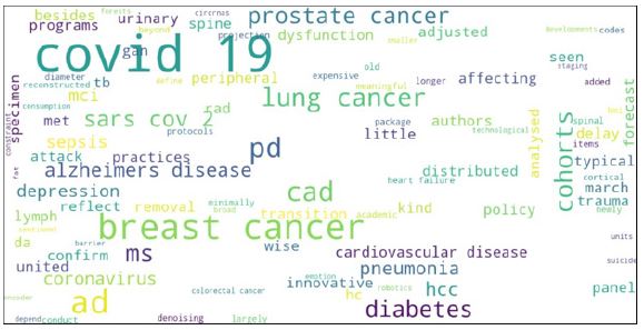 We employed “n-grams mining” as a systematic approach to manually extract the information from abstracts, and supplementing it with the lists containing recognized ML models and diseases. The outcomes obtained from this process underwent cross verification through the iterative word cloud filtering approach. This hybrid approach led to acceptable results.