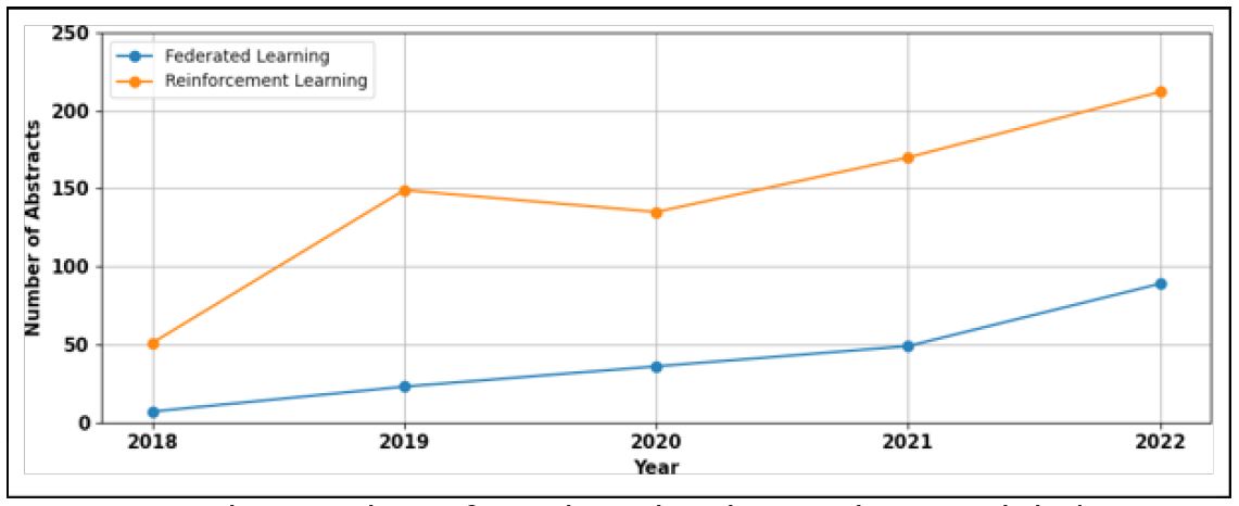 In the section titled “Exploring the Potential Impact of Federated Learning and Reinforcement Learning in Healthcare” we present detailed findings of these two ML models from 2018 to 2022. Our analysis reveals the trends of Federated Learning and Reinforcement Learning in healthcare, along with their correlations with specific diseases and data trends.