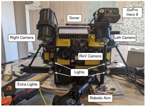 Underwater archaeology has undergone a remarkable transformation, driven by rapid technological advancements. This field, historically reliant on the physical capabilities of human divers, now extensively utilizes Remotely Operated Vehicles (ROVs), marking a significant shift towards high-tech exploration methods. ROVs, originally developed for oceanographic research and offshore operations, have become pivotal in uncovering and preserving the mysteries lying beneath the ocean’s surface. Nowadays, Remotely Operated Vehicles (ROVs) have wide applications in underwater applications such as submarine warfare [1], oil and gas exploration [2], marine science [3] and underwater archaeology [4]. Much research work has focused on the handling of remotely operated underwater vehicles in terms of the degree of human intervention in the handling of the vehicle [5] and the accuracy of the position of moving robotic arms attached to the underwater vehicles [6]. In order to solve these issues, the assistance of computer vision is essential in order to adjust the corresponding sensors. Initially, by locating objects of interest the working area of the robotic arm is defined [7], whereas suitable mathematical models calculate the appropriate torque/force and the slipperiness of the object in order to allow efficient manipulation [8].