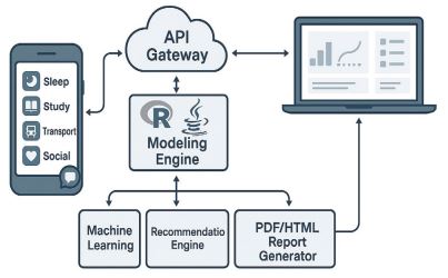 Implementation employs React Native for cross-platform mobile application development, a Python backend utilizing scikit-learn and TensorFlow for machine learning workflows, and PostgreSQL for secure data storage. The architecture ensures compliance with GDPR through end-to-end encryption, OAuth2-based authentication, and anonymized user identifiers. Given the inclusion of sensitive health-related data (e.g., sleep patterns), the system incorporates stringent consent management processes aligned with ethical guidelines and legal requirements, adding layers of complexity to data governance and user privacy.